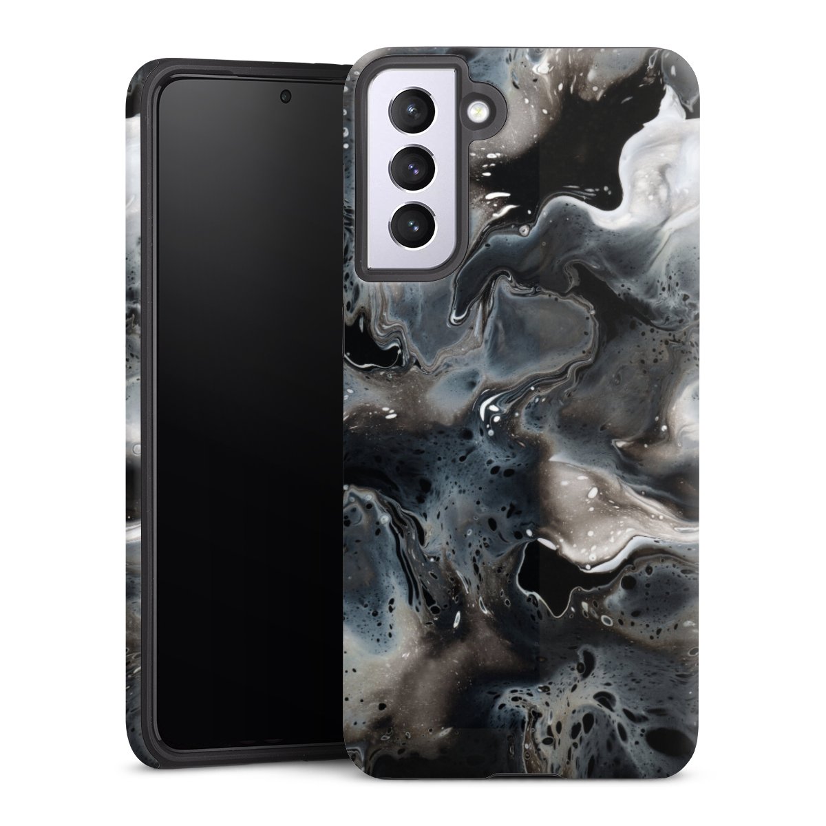 Kova kuori, pehmeä ydin: all over printti -kotelo joustavalla silikonisisuksella.