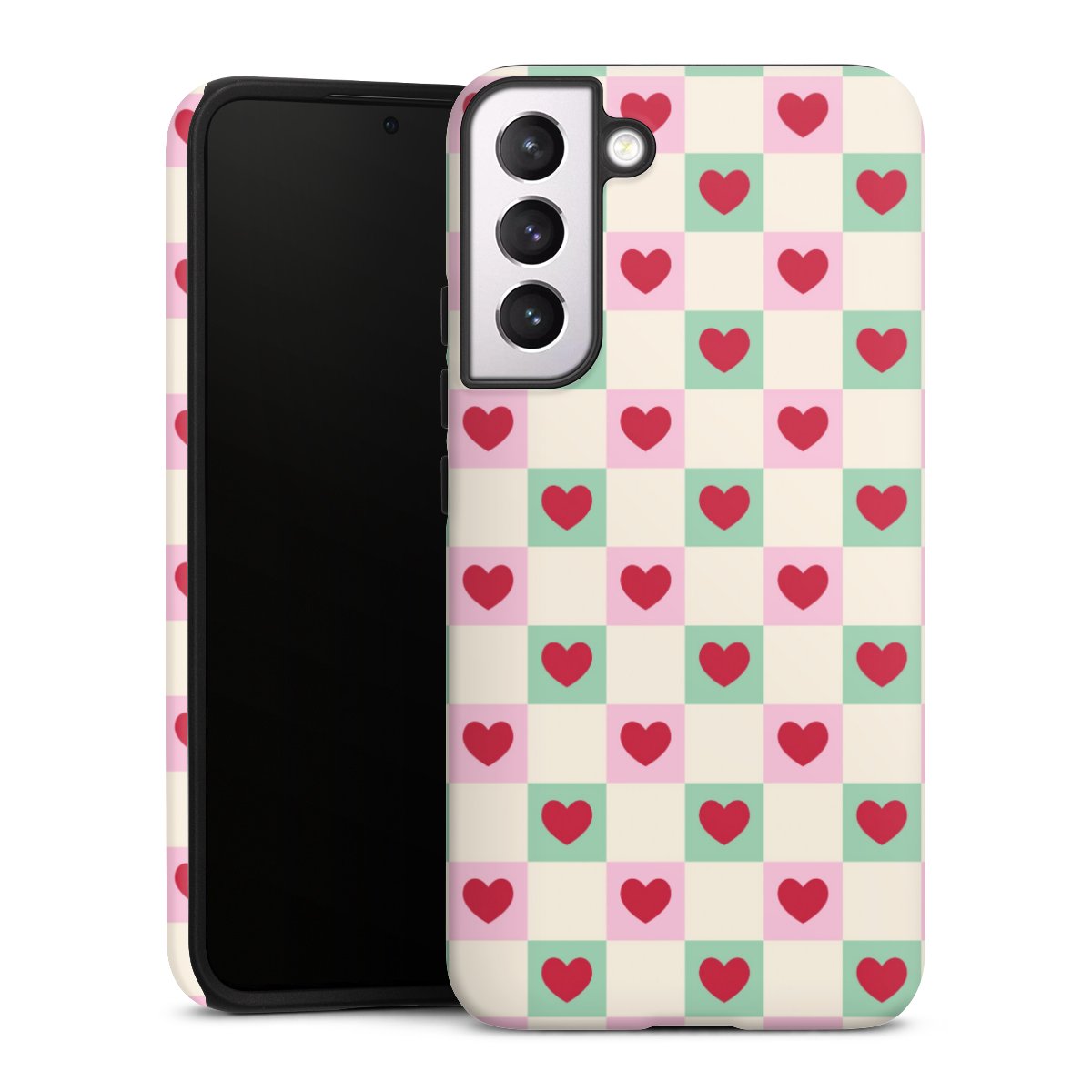 Valentine Checked Hearts Pattern Pink Green