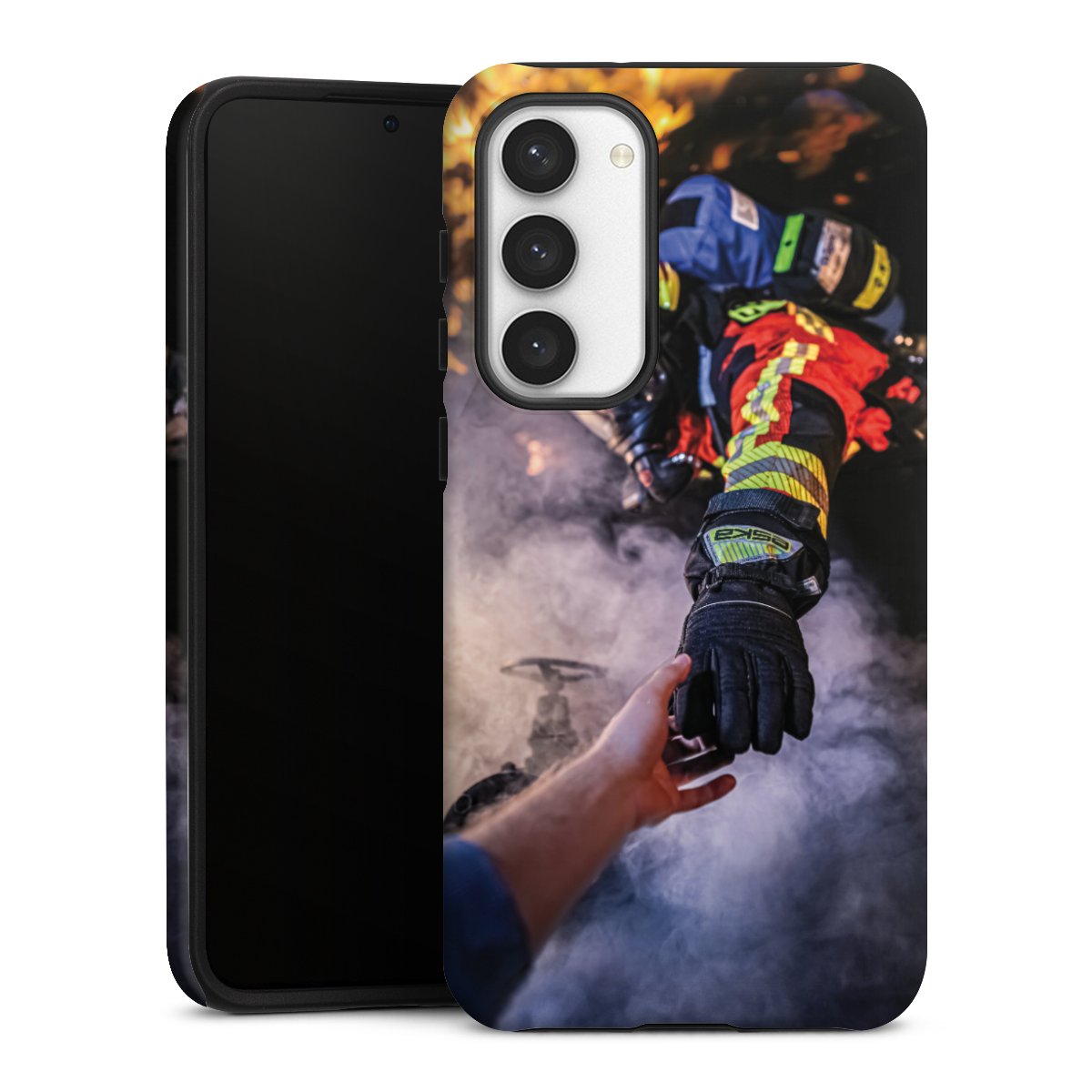 Firefighter Reaches for Hand
