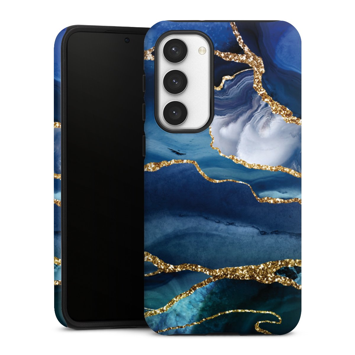 Blue Marble Gold Glitter Look