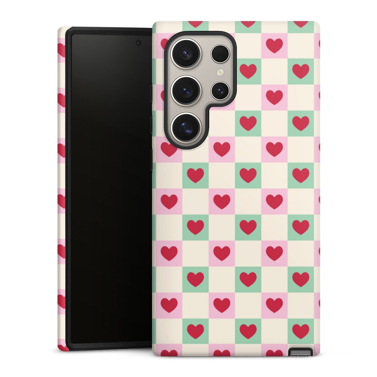 Valentine Checked Hearts Pattern Pink Green
