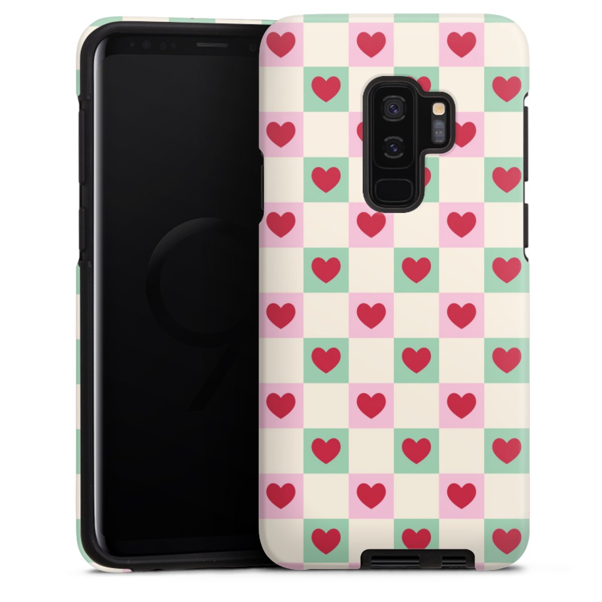 Valentine Checked Hearts Pattern Pink Green