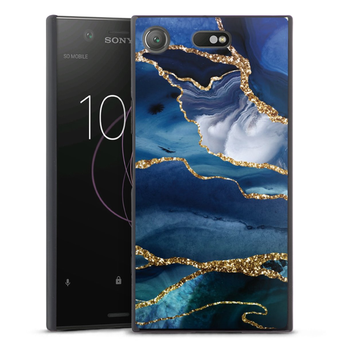 Blue Marble Gold Glitter Look