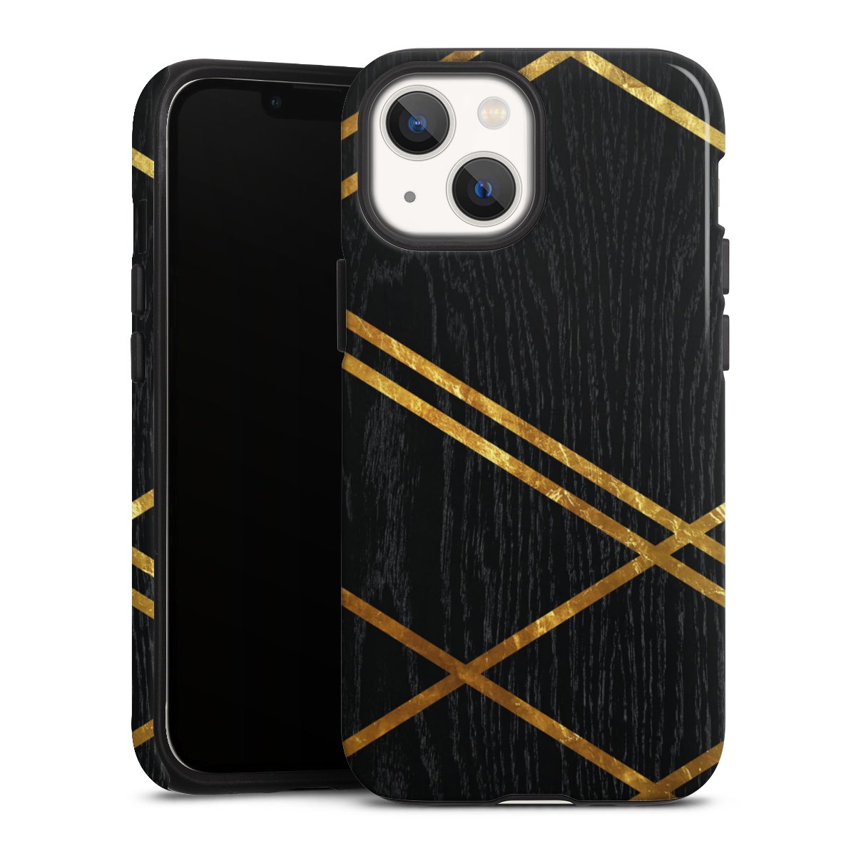 Black Geometric Pattern Golden Stripes