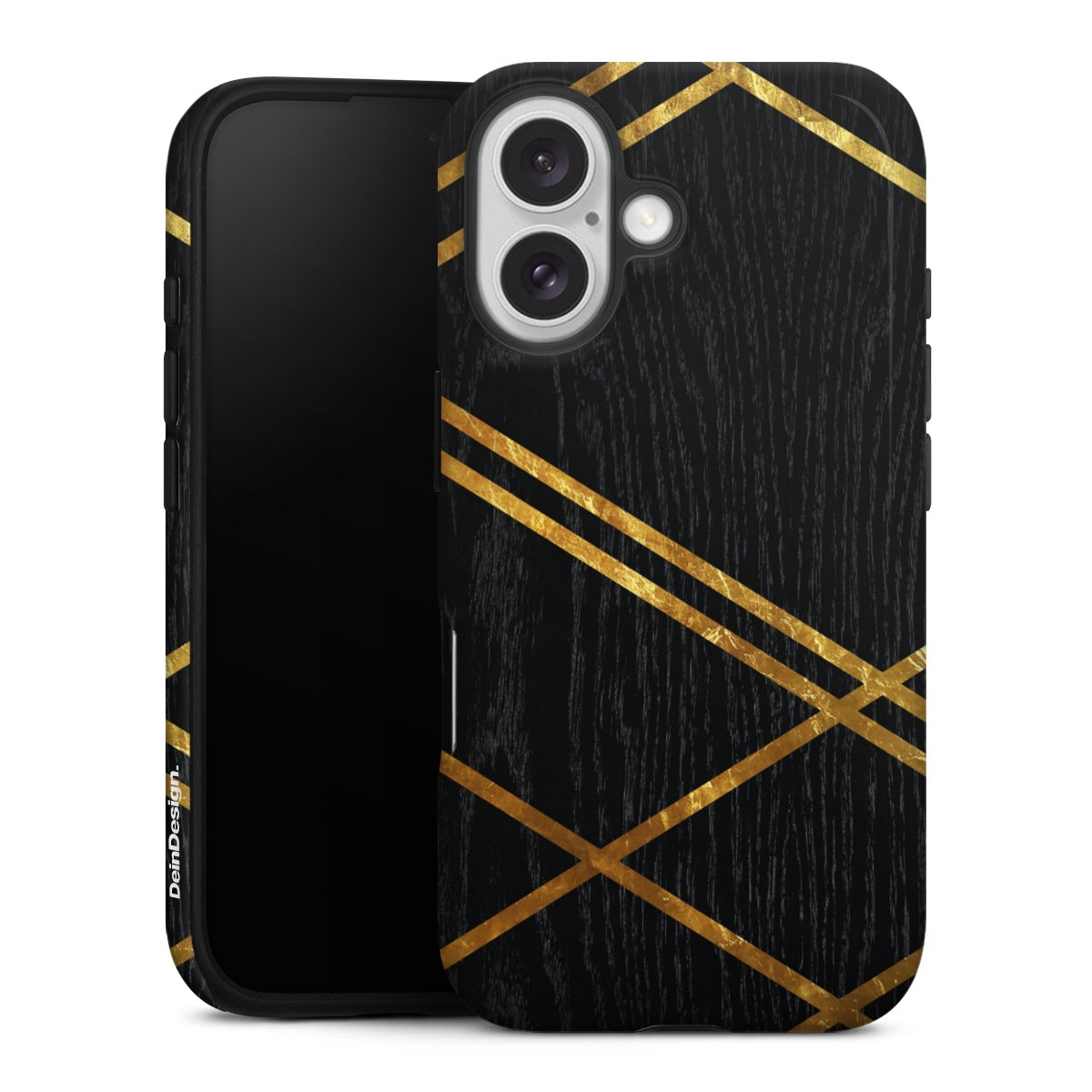 Black Geometric Pattern Golden Stripes