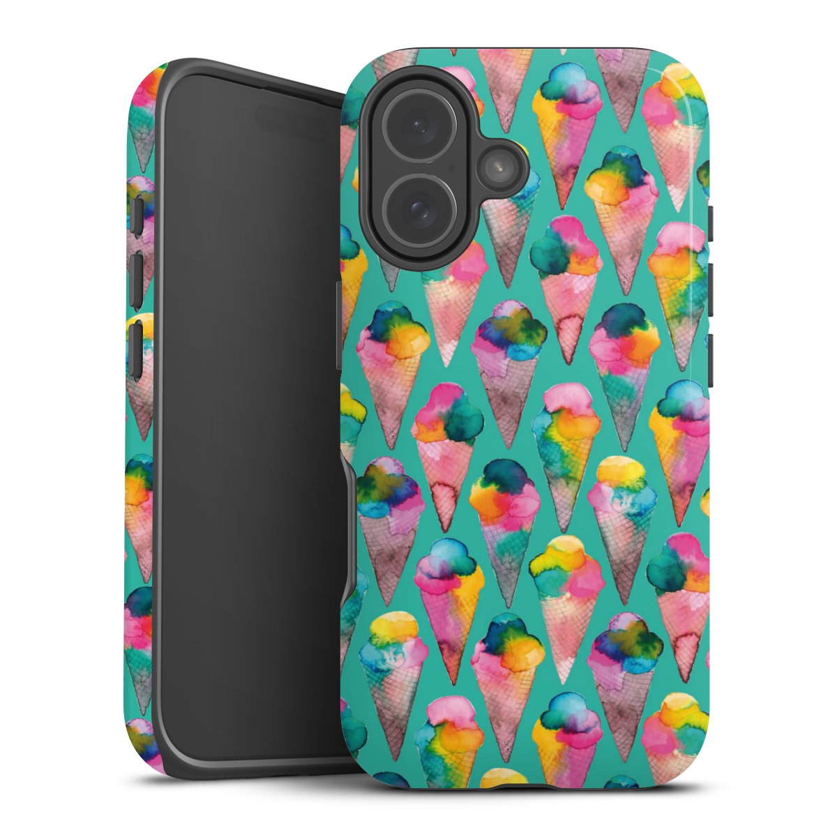 Kova kuori, pehmeä ydin: all over printti -kotelo joustavalla silikonisisuksella.