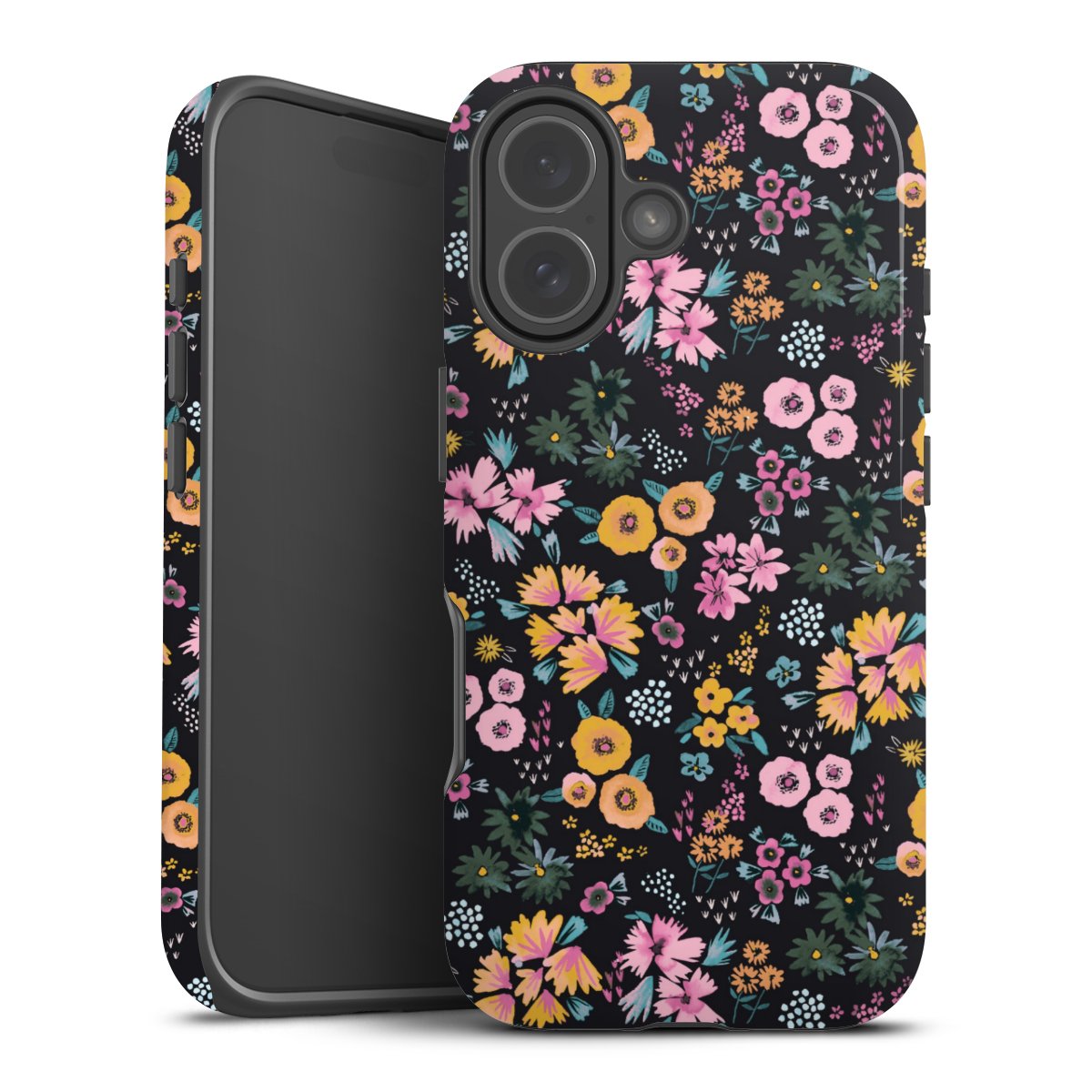 Kova kuori, pehmeä ydin: all over printti -kotelo joustavalla silikonisisuksella.