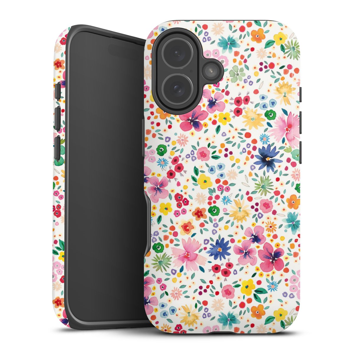 Kova kuori, pehmeä ydin: all over printti -kotelo joustavalla silikonisisuksella.