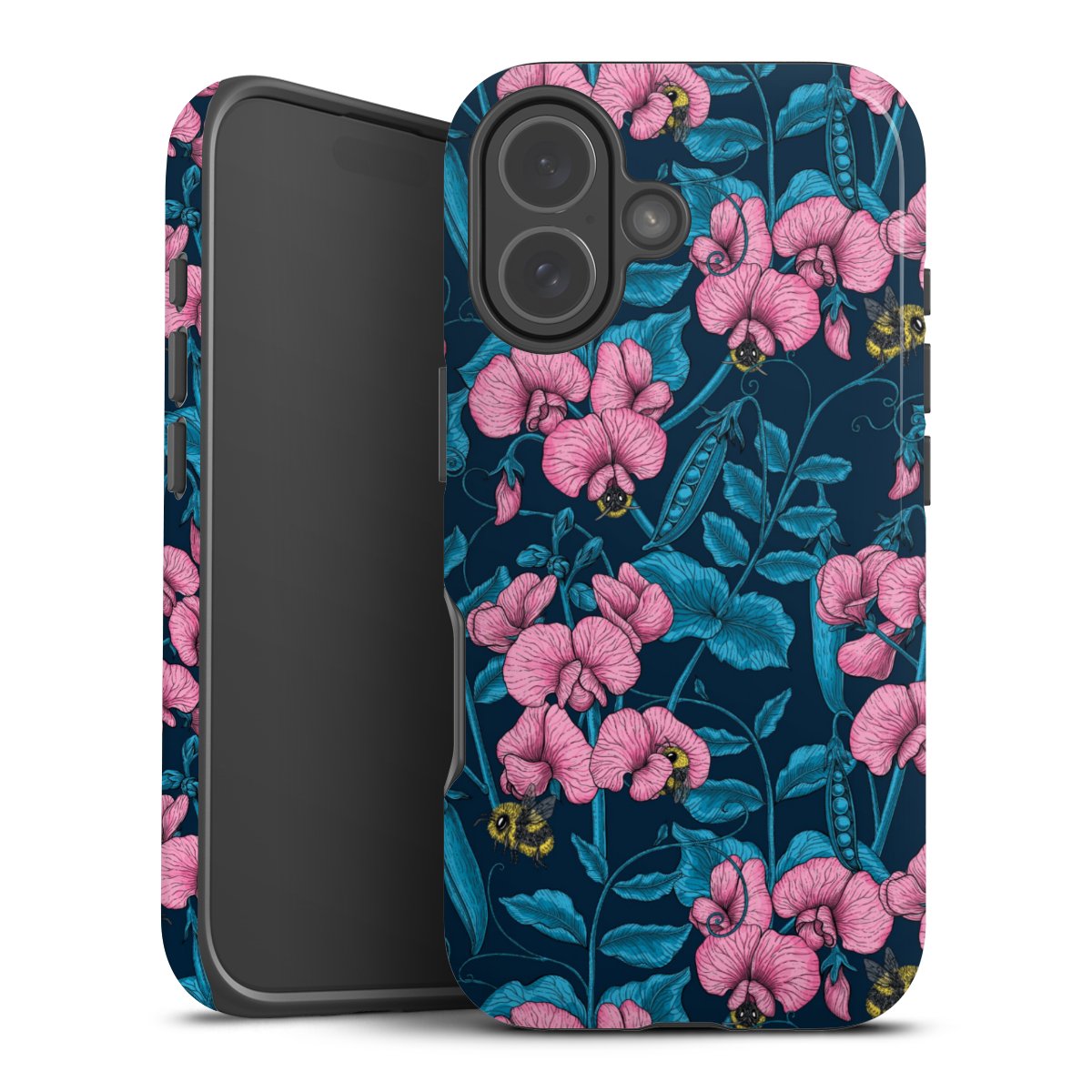 Kova kuori, pehmeä ydin: all over printti -kotelo joustavalla silikonisisuksella.