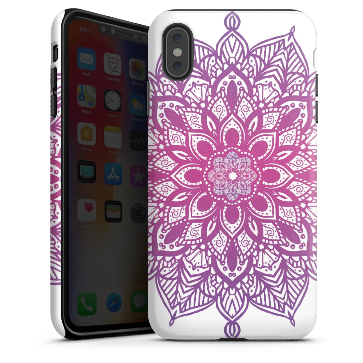 Painatusteknologia Tough Case kotelossamme käytetään edistyksellistä ja kestävää sublimaatiopainatusta. Tämä hienostunut teknologia erottuu edukseen tuottamalla korkealaatuisen, loistavan ja terävän painatusjäljen. Painatettava alue kattaa koko kotelon: takaosa, kehys ja reunat voidaan painattaa kokonaan. Silikoninen sisus jätetään painattamatta. Valitse joku upeista valmiista kuoseistamme tai anna luovuutesi loistaa ja luo oma design omista kuvistasi ja teksteistäsi.