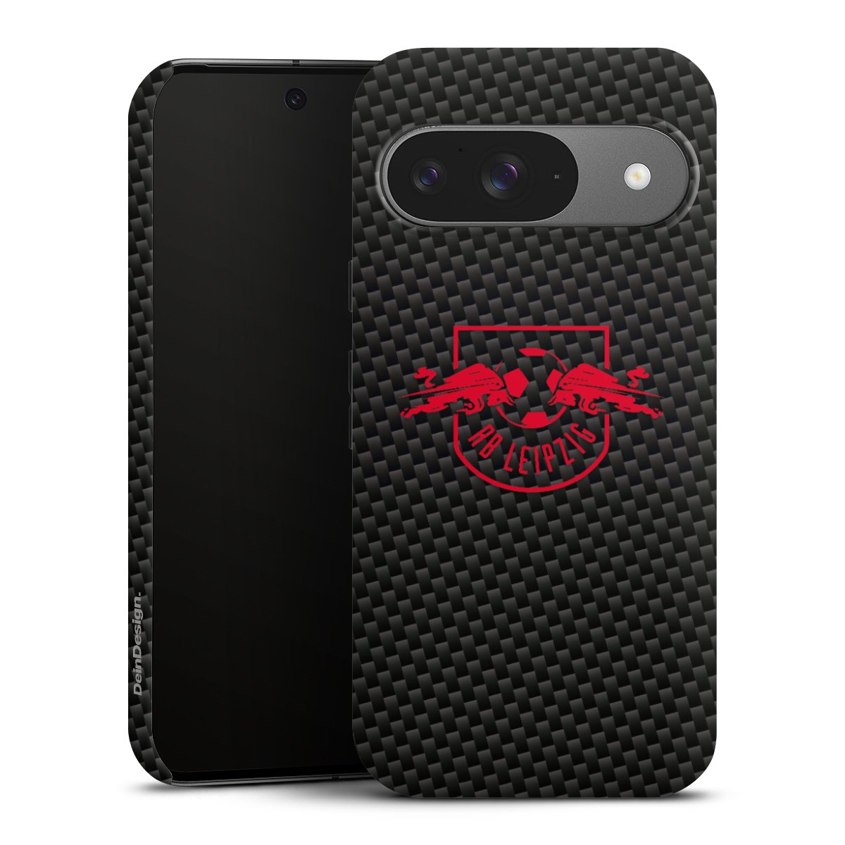 Rotes RB Leipzig Logo auf Carbonoptik