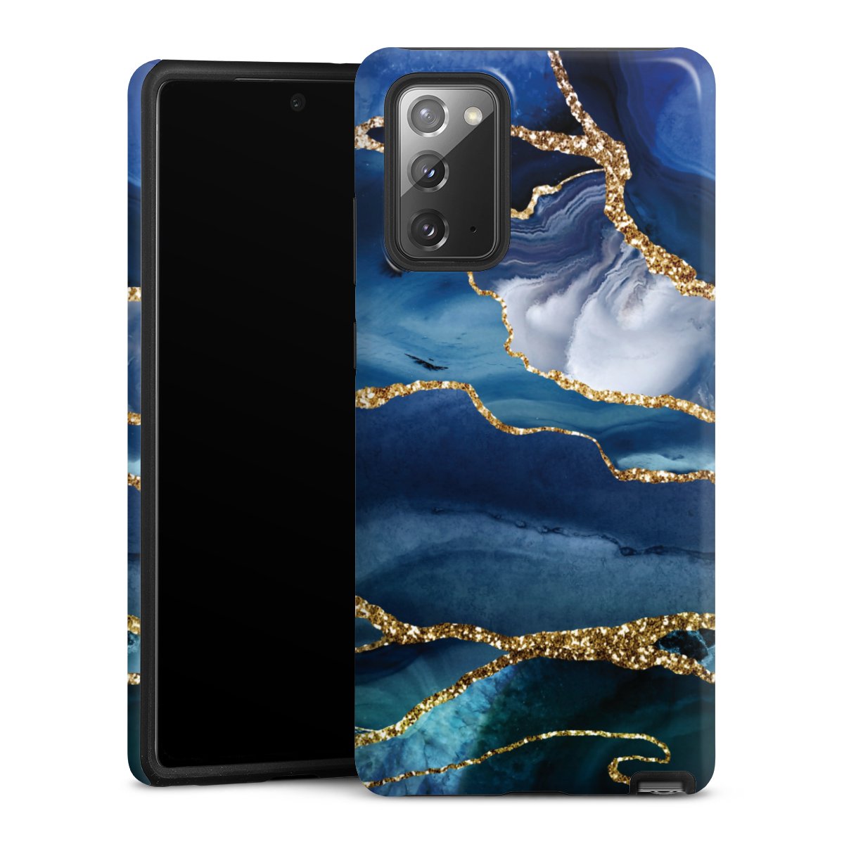 Blue Marble Gold Glitter Look
