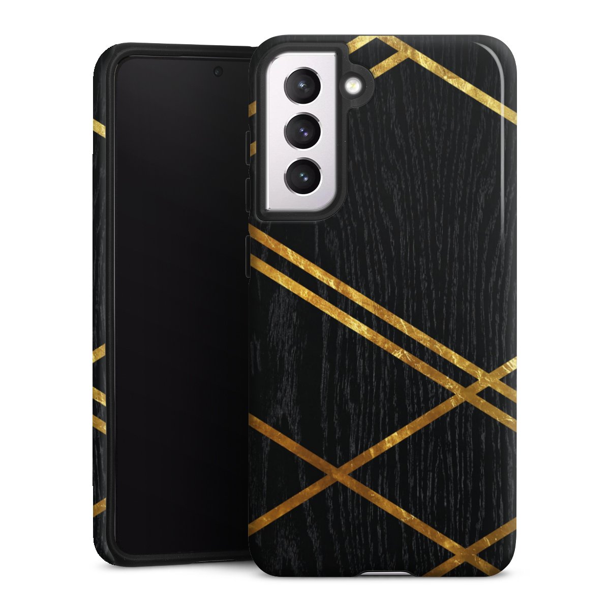 Black Geometric Pattern Golden Stripes