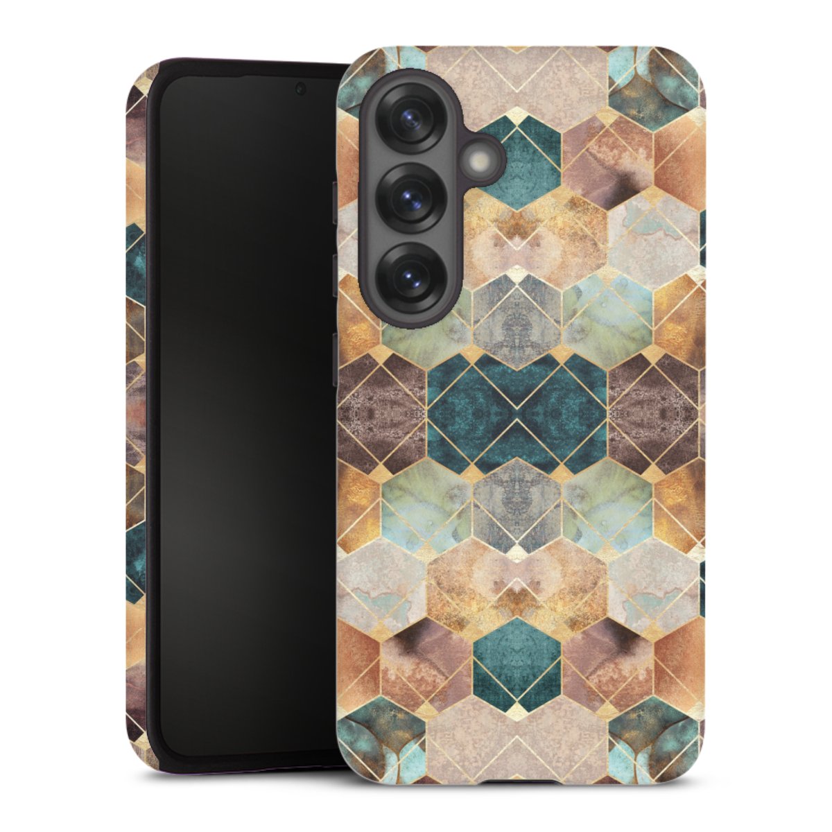 Kova kuori, pehmeä ydin: all over printti -kotelo joustavalla silikonisisuksella.