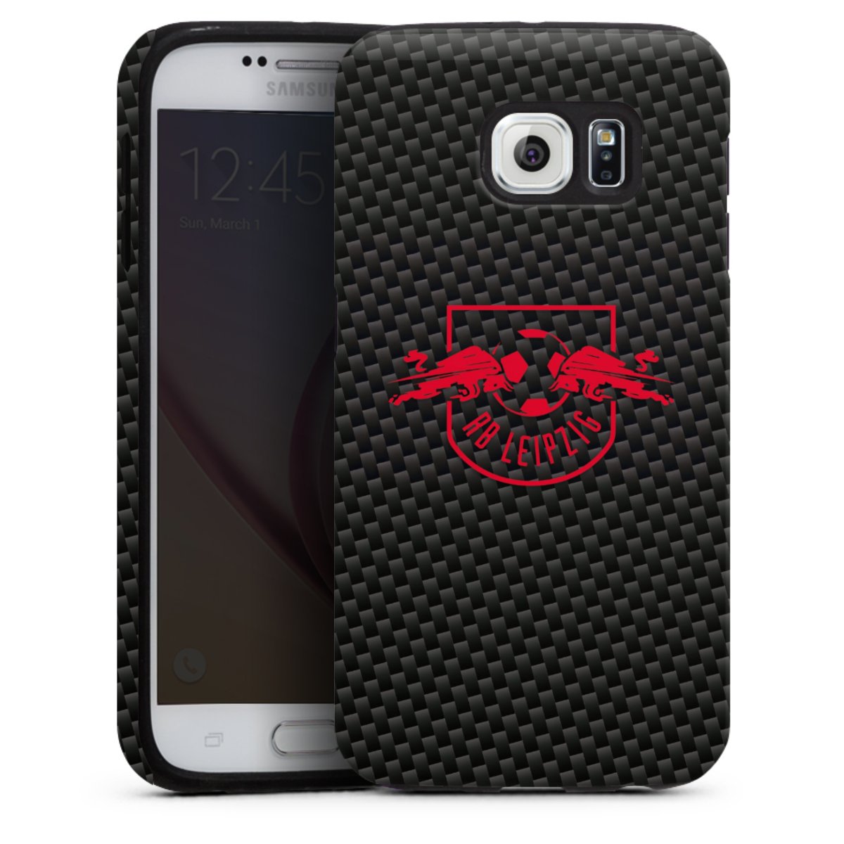 Rotes RB Leipzig Logo auf Carbonoptik