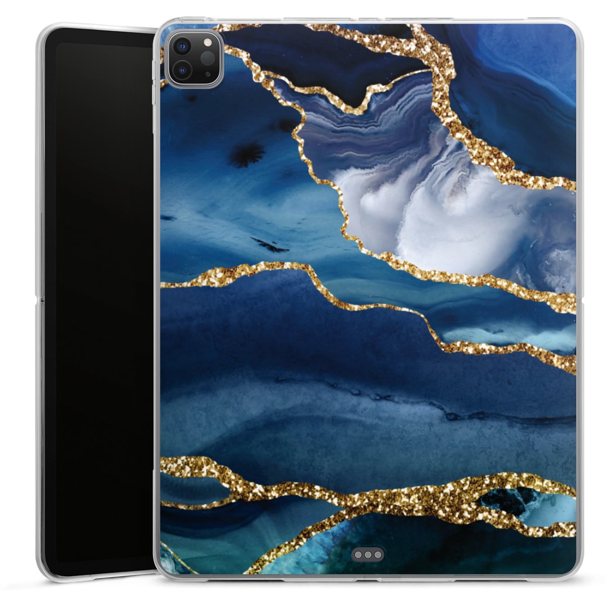 Blue Marble Gold Glitter Look