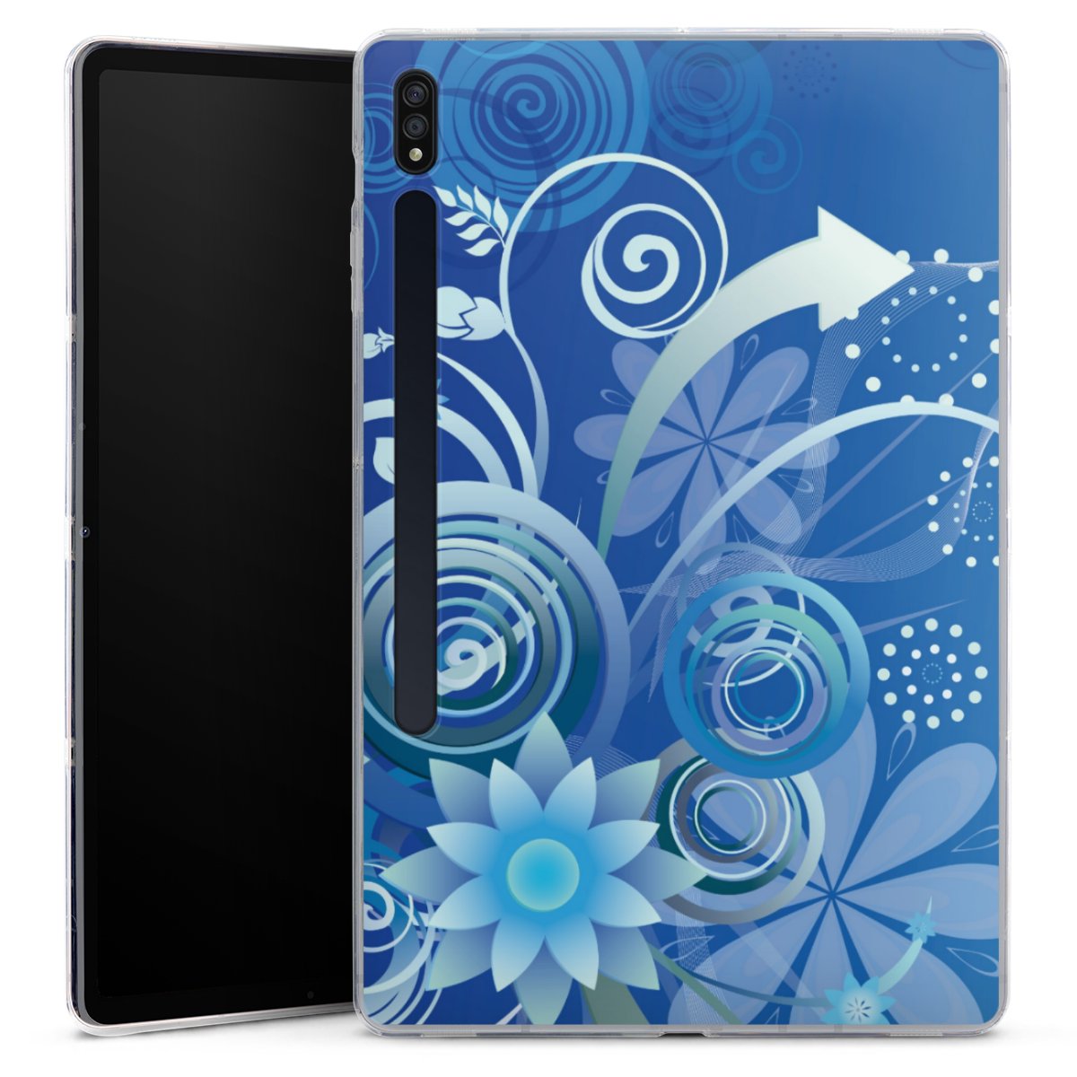 Flowers and Swirls Blue