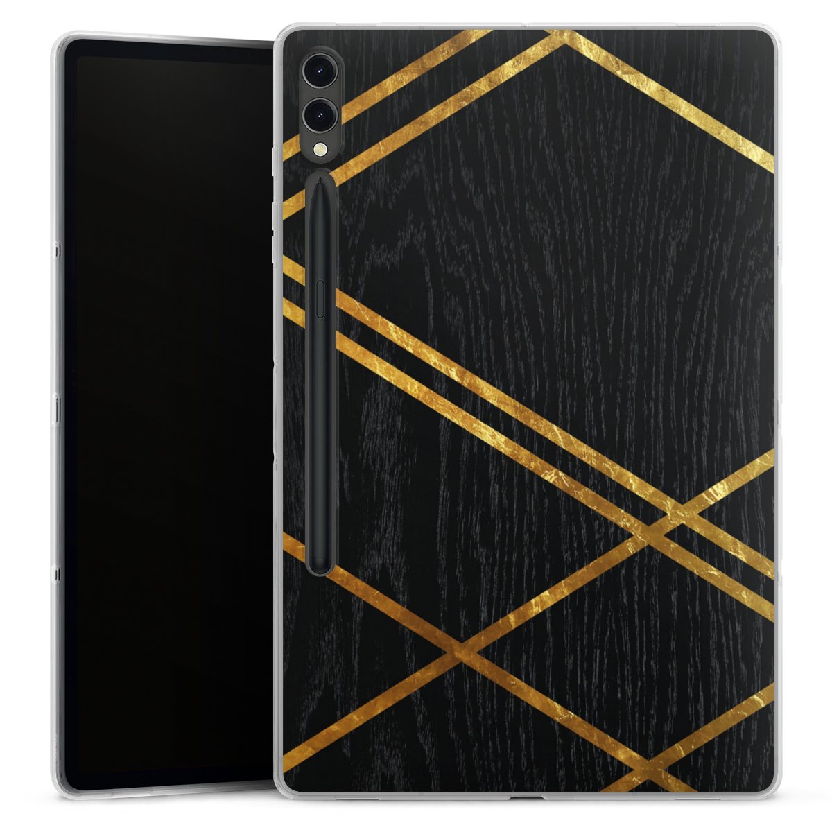 Black Geometric Pattern Golden Stripes