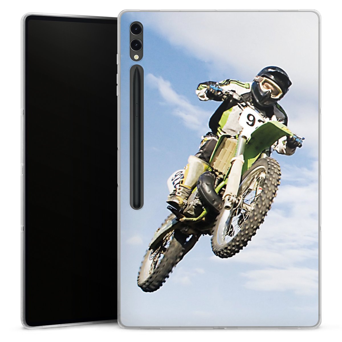 Silikoninen kotelomme istuu täydellisesti: siinä on tarkasti leikatut aukot kaikille liitännöille ja kameralle. Kotelo suojaa kaikkia toiminto-ominaisuuksia ja kohotetut painikkeet antavat lisäsuojan, mutteivät rajoita niiden käyttöä. Voit kiinnittää ja irrottaa kotelon tabletistasi helposti ja nopeasti. Vinkki: käytä kosteaa liinaa ja mietoa pesuainetta kotelon puhdistamiseen.